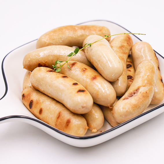 产品规格:9-10厘米长/根;约28g/根;Φ19胶原肠衣 产品规格:1kg/包,20kg/箱 主要配料:牛肉、鸡肉,天然植物香辛料 贮存条件:-18℃,12个月 使用方法:先水煮后煎烤上色(温度不宜过高),配餐